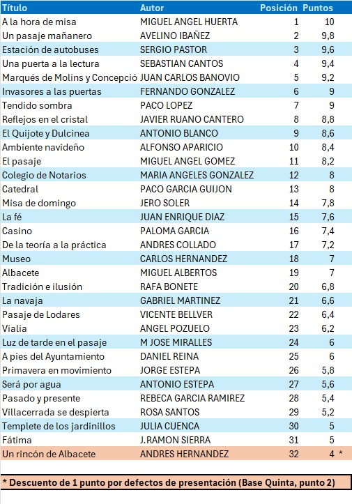 Como viene siendo habitual, las fotografías presentadas y el fallo del Jurado pueden consultarse en el apartado Liga Fotográfica del menú superior de la web.